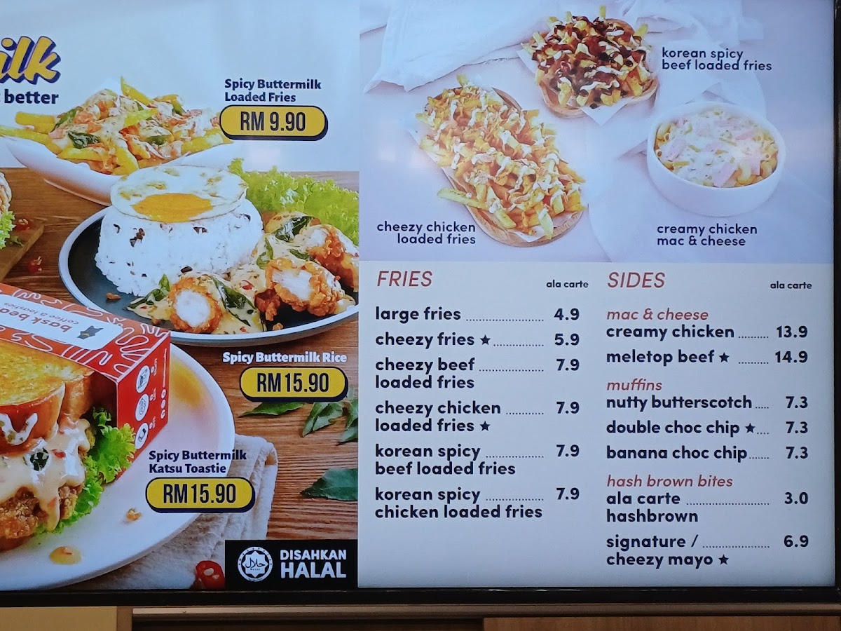 Limited Time Offers: The menu presents unique items like Murtabak Beef Toastie and Murtabak Chicken variations, featuring buttered toast or double stacked instant noodles wrapped in egg, paired with meats such as beef and chicken. These options serve as more filling choices for light meals or snacks.